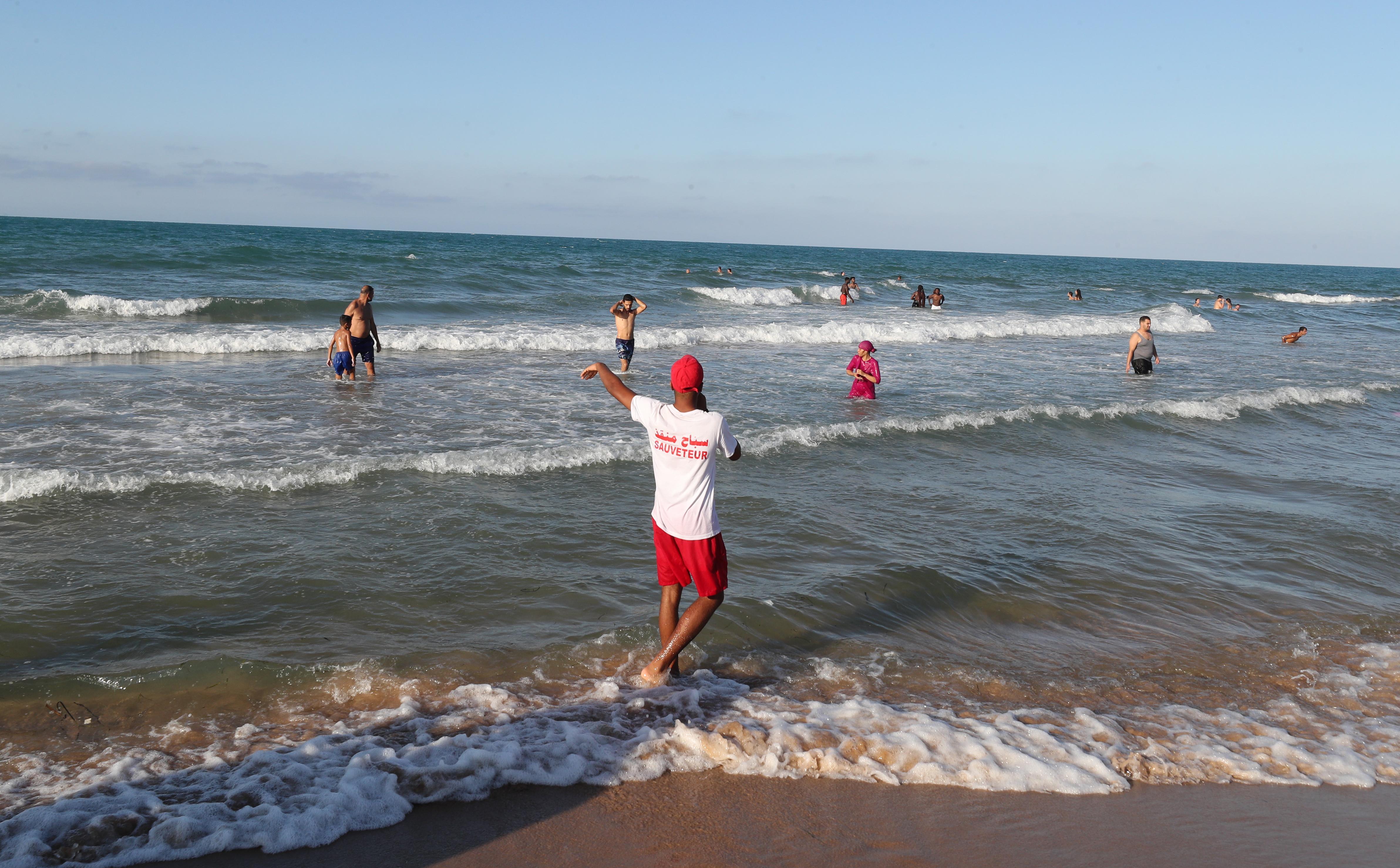 8月6日,人们在突尼斯的迈尔萨海滩休闲。(欧新社)